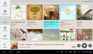 - Grid modus untuk Artis / Lagu / Folder / peramban Genre