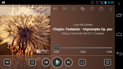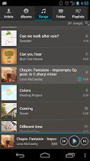 - Browser dan bermain musik oleh artits, album, lagu, playlist, genre dan folder